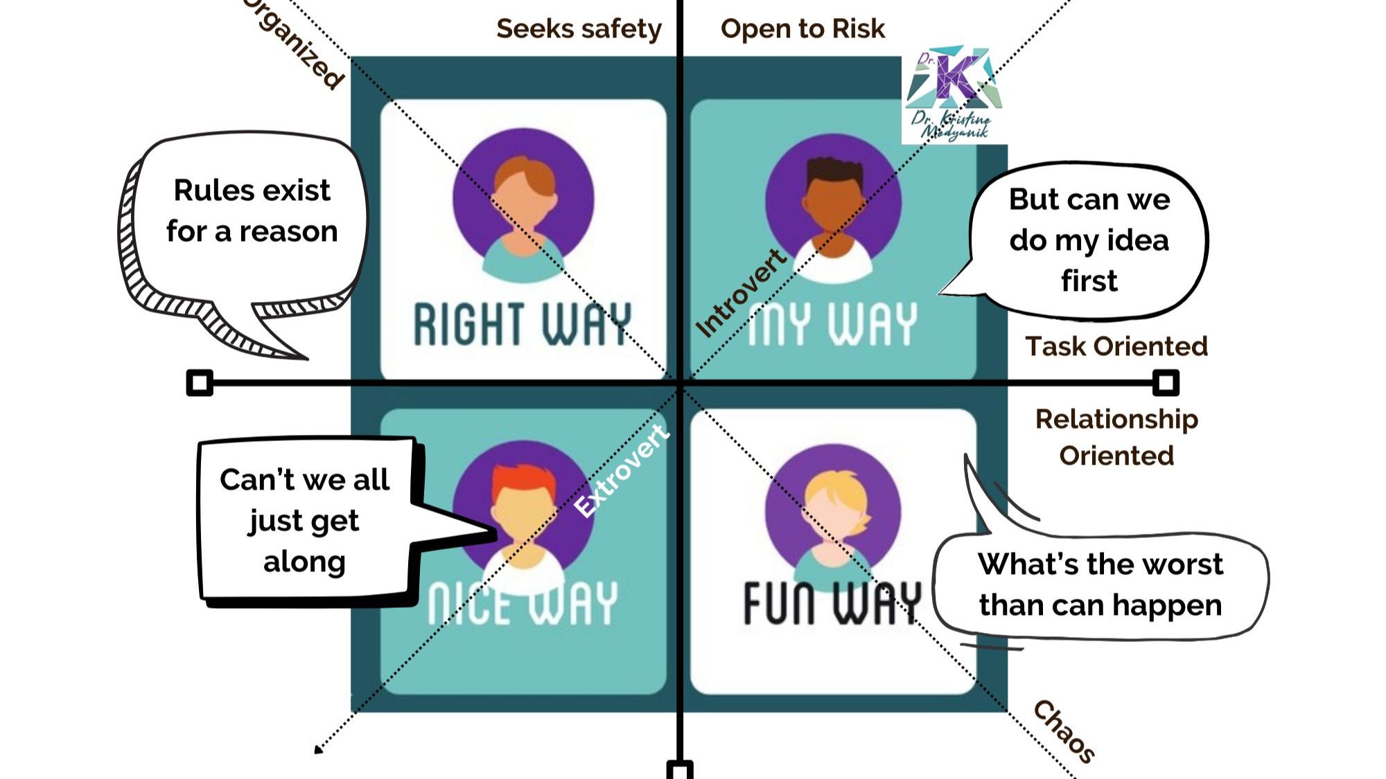 - The My Way champions progress, innovation, and decisive action. These individuals are often the driving force behind getting things done, pushing boundaries, and overcoming obstacles. They bring a sense of urgency and determination, ensuring that initiatives move forward and that the team remains focused on achieving its objectives.
